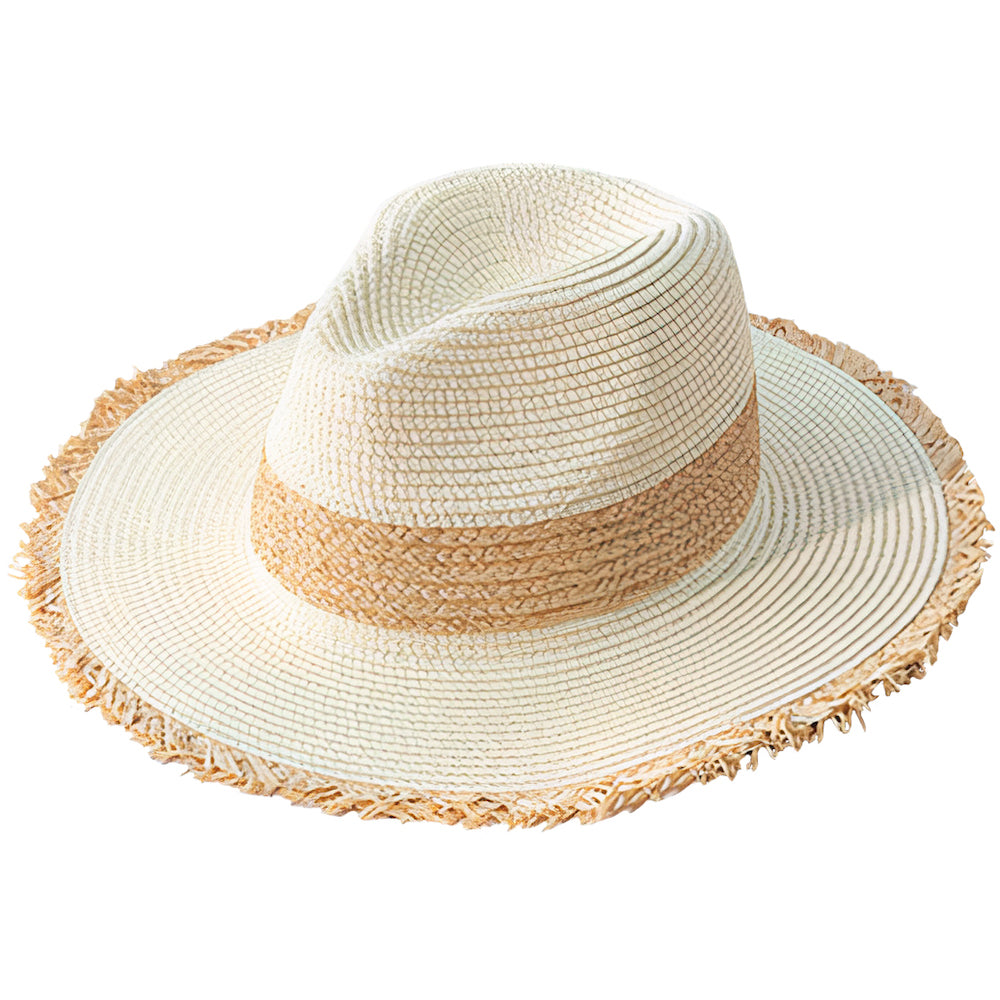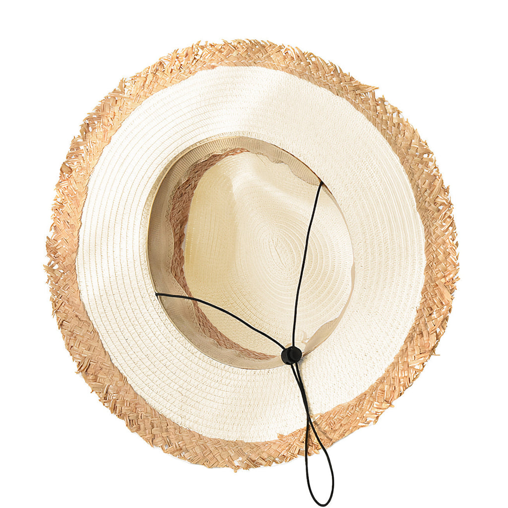 Denne alsidige Panama-stråhat er en diskret blanding af beige og naturligt strå, der komplimenterer ethvert outfit med lys, beroligende nuancer. Hattens ustrukturerede kant giver dette essentielle mode tilbehør masser af karakter. Hvad enten det er på en sommertur eller til en stilfuld aftenfest, er denne hat den ideelle partner, du altid kan stole på.