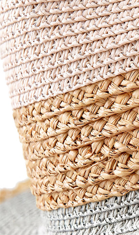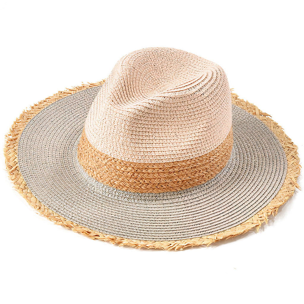 Kombinationen af naturlig stråfarve med grå og lyserød giver denne farverige moderne stråhat det perfekte look til en afslappet stil. Det er den perfekte måde at beskytte sig mod solen og samtidig fremhæve dine bedste outfits.
