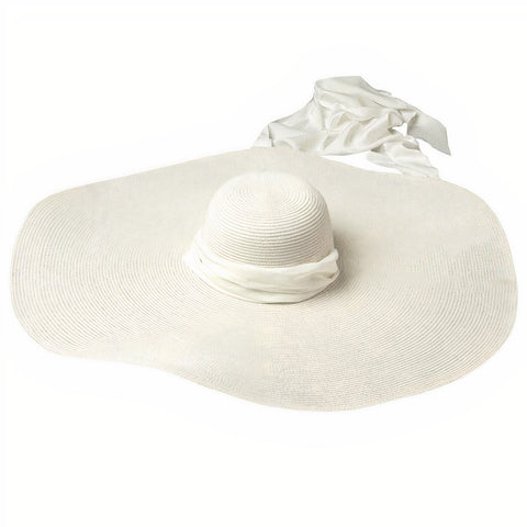 Leder du efter en let sommerhat til en særlig lejlighed? Denne hat lavet af blegede strå er dekoreret med en smuk hvid satin slør. Dens smukke brede, beskyttende skygge vil få dig til at skille dig ud, uanset lejligheden.