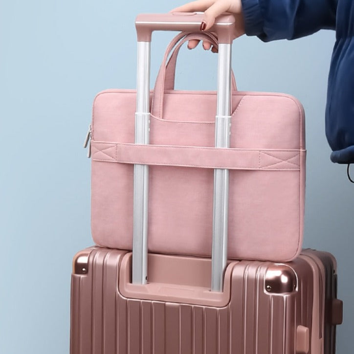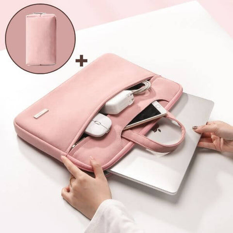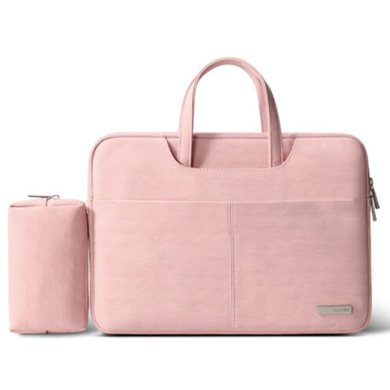 Denne lyserøde computertaske hjælper dig med at holde dig organiseret hele dagen med dens mange opbevaringslommer. Beskytter din bærbare computer, der er op til 15,6 tommer.