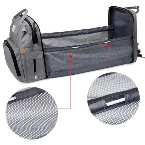 Kan udvides til en baby seng for babyens komfort, hvis du ønsker at skifte ham eller nyde ham sikkert udendørs. Den har også barnevognsbeslag, så du ikke behøver at bære den på ryggen. Takket være sin unisex-design passer den både til unge mødre og fædre til vellykkede gåture.