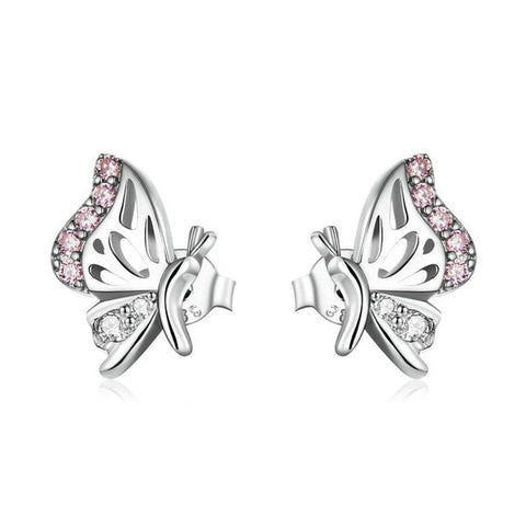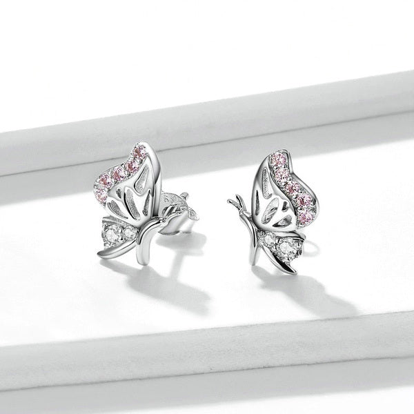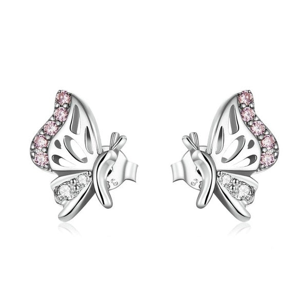 Dette charmerende par sommerfugleøreringe er lavet af massivt sølv og er tro mod sommerfuglenes glans og ynde. Øreringene er omhyggeligt ciseleret og pyntet med zirkonkrystaller, der giver ekstra gnist og farve.