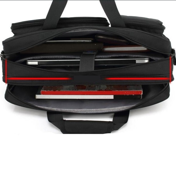 Transporter din computer sikkert i denne sorte computertaske. Taske har en polstret afdeling for op til en 17,3 tommer bærbar computer samt flere opbevaringslommer til bærbart tilbehør, såsom en mus, oplader, kabler og USB-flashdrev. Denne taske er det ideelle valg for mænd i alle aldre.