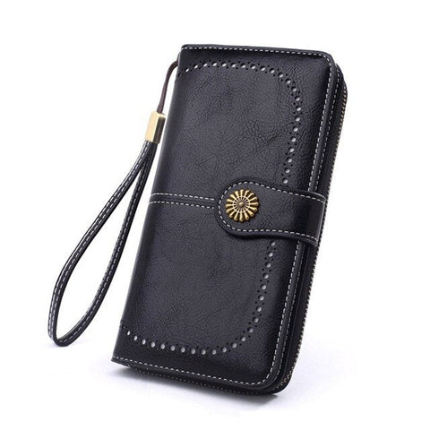 Stor vintage pung er lavet af kunstlæder og har en lomme til mønter, et rum til kort, en seddelrum samt et sted til personalekort. Denne pungs vintage-stil vil tilføje stil til din hverdag, og håndledsremmen gør den lige så nem at bruge som en håndtaske.