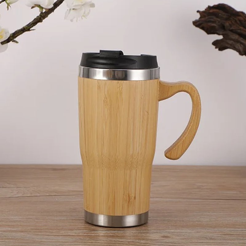 Termokrus holder drikkevarer varme i op til 8 timer og kolde i 12 timer, så det er det perfekte valg til en travl arbejdsdag. Kombiner praktisk brug og sofistikeret stil med dette trækrus, der bringer elegance til hverdagens kaffepauser.