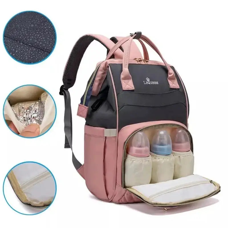 Takket være dens velorganiserede sektioner, gør denne pusletaske det muligt at opbevare babyudstyr, såsom bleer, flasker, legetøj og skiftetøj, omhyggeligt. Dens holdbare lynlås sikrer hurtig og nem adgang til dine ting, hvilket gør udflugter stressfrie.