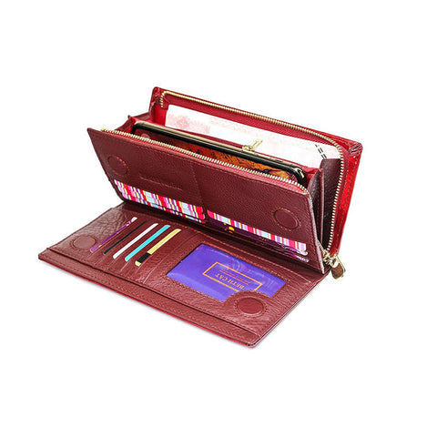 Trendy pung til kvinder er lavet af blankt kunstlæder og er en af de mest populære modeller blandt kvinder. Denne stilfulde og praktiske pung indeholder flere lommer, rum og kortpladser, så du kan få plads til alle dine vigtige ting.